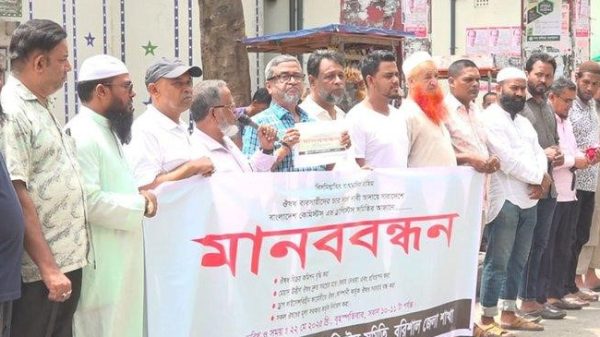 ওষুধের দাম সরকারিভাবে নির্ধারণ ও বিক্রির কমিশন বৃদ্ধিসহ চার দফা দাবিতে বরিশালে মানববন্ধন করেছেন খুচরা ব্যবসায়ীরা। আজ বৃহস্পতিবার দুপুরে নগরীর অশ্বিনী কুমার হলের সামনে এ কর্মসূচি করে বাংলাদেশ কেমিস্টস অ্যান্ড ড্রাগিস্টস সমিতি, বরিশাল জেলা শাখা।