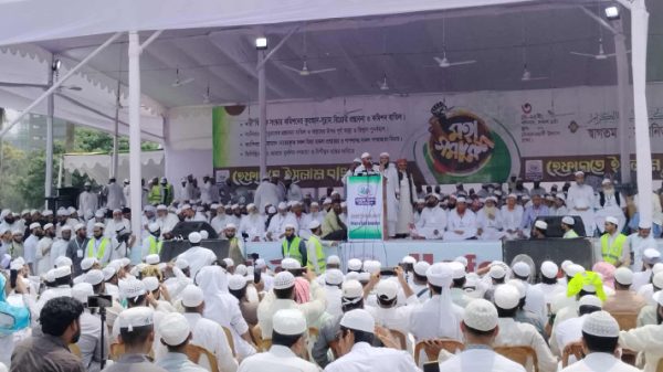 হেফাজতে ইসলাম নারীর ন্যায্য অধিকার প্রতিষ্ঠায় কাজ করছে উল্লেখ করে তিনি আরো বলেন, আমরা সরকারের নিকট দাবি জানাচ্ছি, দেশের যৌতুকপ্রথা বন্ধে কঠোর আইন করুন। শিক্ষা ও কর্ম ক্ষেত্রে নারীর নিরাপত্তা নিশ্চিত করুন। এছাড়া, গণমাধ্যম সংস্কার কমিশন ফৌজদারি দণ্ডবিধি ও সাইবার সিকিউরিটি আইন থেকে ধর্ম অবমাননার শাস্তি সংক্রান্ত ধারাগুলো বাদ দেয়ার সুপারিশ করেছে, এটি আরেক গভীর ষড়যন্ত্র। সংখ্যাগুরু কিংবা সংখ্যালঘু— কারো ধর্মীয় অনুভূতিতে আঘাত দেয়ার অধিকার অন্য কারো নেই। তাই ধর্ম অবমাননার শাস্তির আইনি ধারাগুলো বহাল রেখে গণমাধ্যম সংস্কার কমিশনের ওই নির্দিষ্ট সুপারিশগুলো বাদ দিতে হবে। শুধু তা-ই নয়, আল্লাহ ও তাঁর রাসূল (সা.)-এর নামে কটূক্তি বা বিষোদ্গার বন্ধে সর্বোচ্চ শাস্তির আইন করতে হবে। ৫ আগস্টের এই বিজয়কে আমাদের কাঙ্ক্ষিত লক্ষ্যে নিয়ে যেতে হবে। এমন একটি ন্যায়ভিত্তিক সংবিধান ও সরকারব্যবস্থা গড়ে তুলতে হবে, যাতে করে এই বাংলাদেশের মাটিতে আর কখনো কোনো ফ্যাসিস্ট স্বৈরাচারের জন্ম না হয়।