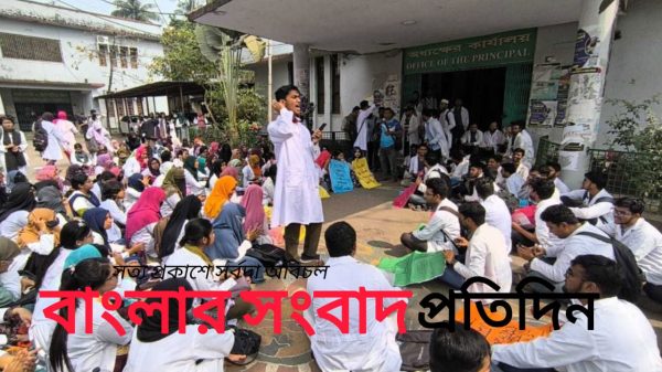 বরিশাল শের ই বাংলা মেডিকেল কলেজে শিক্ষক সংকট নিরসনের দাবিতে শাটডাউন কর্মসূচি করছে শিক্ষার্থীরা। শার্ট ডাউন কর্মসূচির সপ্তম দিনেও ক্লাস ও একাডেমির কার্যক্রম বর্জন করছে । রবিবার (২৩ ফেব্রুয়ারি) আন্দোলনরত শিক্ষার্থীরা দাবি করে, বরিশাল শের ই বাংলা মেডিকেল কলেজে প্রয়োজনীয় সংখ্যক শিক্ষক না থাকায় একাডেমিক কার্যক্রমে ব্যাঘাত হচ্ছে। শের ই বাংলা মেডিকেল কলেজে ৩৩৪ টি পদের মধ্যে ১৮৮ টি শিক্ষক পদ শুন্য আছে। বিশেষ করে মেডিসিন, মাইক্রোবায়োলজি, প্যাথোলজি, ফিজিওলজি, সিসিইউ, গ্যাস্ট্রোএন্টারোলজি ডিপার্টমেন্টসহ ডেন্টাল ইউনিটের অধিকাংশ ডিপার্টমেন্টে এ শিক্ষক সংকট রয়েছে শিক্ষার্থীরা পূর্বে আন্দোলনের ডাক দিলে ৬ জন শিক্ষক নিয়োগ দিয়ে প্রজ্ঞাপন জারি করে। শিক্ষার্থীরা আরো জানান,শিক্ষক সংকট দ্রুত নিরসন না হলে আরো কঠোর কর্মসূচির ঘোষনা দেয়া হবে