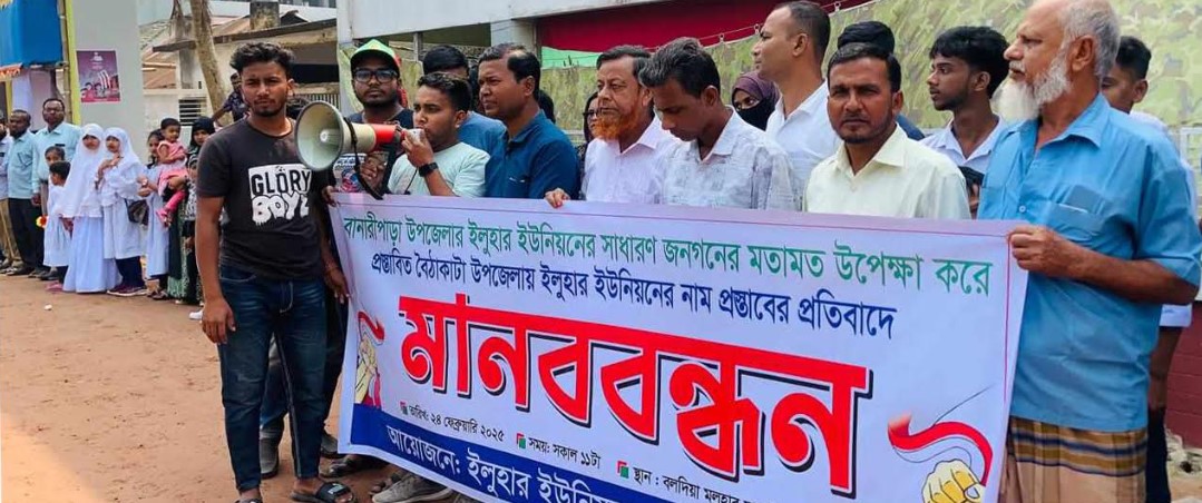প্রস্তাবিত পিরোজপুরের বৈঠাকাটা উপজেলার সঙ্গে বরিশালের বানারীপাড়া উপজেলার ইলুহার ও বিশারকান্দি ইউনিয়ন অর্ন্তভূ্িক্তর অপচেষ্টার প্রতিবাদে এবং অখন্ড উপজেলা রাখার দাবীতে মানববন্ধন ও বিক্ষোভ মিছিল অনুষ্ঠিত হয়েছে। সোমবার (২৪ ফেব্রুয়ারী) বেলা ১১টায় বানারীপাড়া উপজেলার ইলুহার ইউনিয়নের বলদিয়া মলুহার মাধ্যমিক বিদ্যালয়ের সামনে শিক্ষক ও শিক্ষার্থীসহ এলাকার সর্বস্তরের হাজারো মানুষের অংশগ্রহণে এ প্রতিবাদ কর্মসূচি পালণ করা হয়। এসময় অন্যান্যের মধ্যে বক্তৃতা করেন বলদিয়া মলুহার বালিকা মাধ্যমিক বিদ্যালয়ের প্রধান শিক্ষক আতিউর রহমান,বলদিয়া মলুহার মাধ্যমিক বিদ্যালয়ের সহকারি শিক্ষক মুনিরুল ইসলাম,পশ্চিম মলুহার সরকারি প্রাথমিক বিদ্যালয়ের সহকারি শিক্ষক আল-আমিন ও রাবেয়া খাতুন,ইলুহার ইউনিয়নের ৯ নম্বর ওয়ার্ড বিএনপির সভাপতি নুরুল হক নুরু, বরিশাল বিশ্ববিদ্যালয়ের ছাত্রনেতা আশিক আহমেদ. ইলুহার ইউনিয়নের ডিজিটাল সেন্টারের ইউডিসি উদ্যোক্তা মাহাতাব উদ্দিন প্রমুখ। বক্তারা এসময় অভিবক্ত বাংলার মূখ্যমন্ত্রী শেরে বাংলা আবুল কাসেম ফজলূল হকসহ বহু জ্ঞানী-গুনীর স্মৃতিধন্য পূণ্যভূমি এবং ইতিহাস-ঐতিহ্য সমৃদ্ধ বানারীপাড়া উপজেলাকে খন্ডিত করার অপচেষ্টার তীব্র নিন্দা ও প্রতিবাদ জানিয়ে বলেন,অবিলম্বে এ অপতৎপরতা বন্ধ করা না হলে বৃহত্তর আন্দোলন কর্মসূচি পালণ করা হবে। প্রসঙ্গত, পিরোজপুর জেলার নাজিরপুর উপজেলার কলারদোয়ানিয়া ইউনিয়নের মুগারঝোর গ্রামের বৈঠাকাটা একটি বাজারের নাম। নাজিরপুর উপজেলার ৩টি,বানারীপাড়ার দুটি ও স্বরূপকাঠি উপজেলার একটি ইউনিয়নের সমন্বয়ে এ বৈঠাকাটা বাজারকে উপজেলায় রূপান্তরের চেষ্টা চলছে। জানা গেছে,গত ১৬ ফেব্রুয়ারী জেলা প্রশাসনের মাসিক উন্নয়ন সমন্বয় কমিটির সভায় পিরোজপুর প্রেসক্লাবের সভাপতি এসএম রেজাউল ইসলাম শামীম জন্য প্রস্তাব উত্থাপন করেন। ওই সভায় প্রেসক্লাবের সাবেক সভাপতি মনিরুজ্জামান নাসিম আলী বৈঠাকাটা উপজেলা গঠনের সার্বিক যৌক্তিকতা তুলে ধরেন। এর আগে ৯ ফেব্রুয়ারী জেলা আইন শৃঙ্খলা কমিটির মাসিক সভায়ও অনুরূপ প্রস্তাব তুলে ধরা হয়। ফলে পিরোজপুর জেলা প্রশাসনের মাসিক উন্নয়ন সমন্বয় সভায় বৈঠাকাটা উপজেলা গঠনের সম্ভাব্যতা ও জনমত যাচাইয়ের জন্য জেলা প্রশাসনের স্থানীয় সরকার বিভাগের উপ-পরিচালকের নেতৃত্বে একটি কমিটি গঠন করা হয়। এ খবর ছড়িয়ে পড়লে উপজেলার ইলুহার ও বিশারকান্দি ইউনিয়নসহ দলমত,শ্রেণী-পেশা,ধর্ম-বর্ণ নির্বিশেষে গোটা বানারীপাড়া উপজেলাবাসীর মাঝে চরম ক্ষোভের সৃষ্টি হয়। সামাজিক যোগাযোগ মাধ্যমে এর তীব্র নিন্দা ও প্রতিবাদের ঝড় ওঠে। এ অপচেষ্টা রূখে দিতে অনেকেই আদালতে রিট (মামল