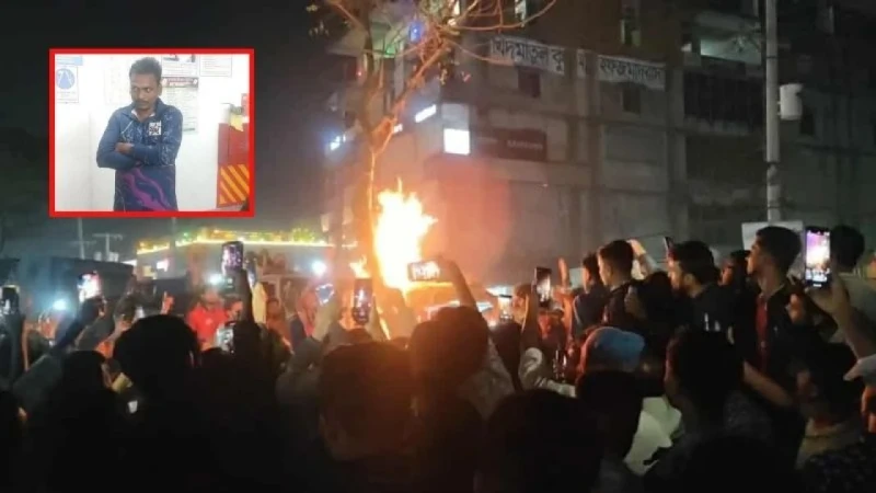 পরে গাছের সঙ্গে ঝুলিয়ে পিটিয়ে মৃত্যু নিশ্চিত করার পর মরদেহ আগুনে পুড়িয়ে দেয় ‘তৌহিদি জনতা’। বৃহস্পতিবার (১৮ ডিসেম্বর) রাত ৯টায় পাইওনিয়ার নিট কম্পোজিট কারখানায় এ ঘটনা ঘটে।