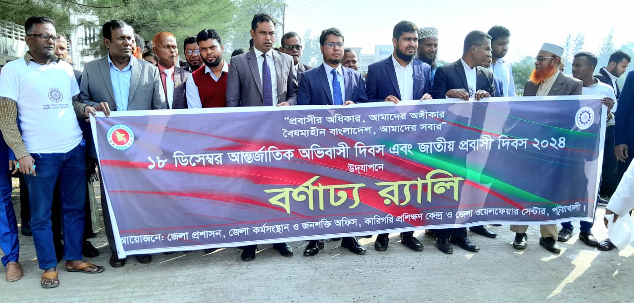 বর্ণাঢ্য আয়োজনে পটুয়াখালীতে আন্তর্জাতিক অভিবাসী দিবস পালিত।