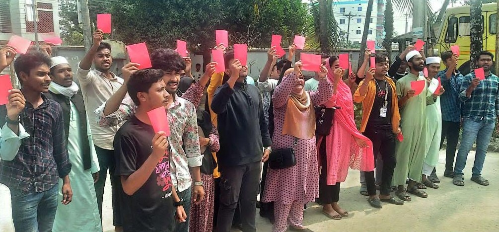 পটুয়াখালীর বাউফলে ধর্ষণ, খুন, চুরি-ডাকাতি, রাহাজানিসহ আইন-শৃঙ্খলার সার্বিক অবনতির প্রতিবাদে লাল কার্ড প্রদর্শন করে মিছিল করেছে বৈষম্যবিরোধী ছাত্র আন্দোলনের শিক্ষার্থীরা।গতকাল সোমবার (২৪ ফেব্রুয়ারি) বেলা ১১ টার দিকে বাউফল পৌরশহরে বিভিন্ন সড়কে ওই মিছিল করা হয়। মিছিলটি বাউফল সরকারি কলেজ মাঠ থেকে শুরু হয়ে উপজেলা পরিষদ ঘুরে বিভিন্ন সড়ক দিয়ে বাউফল থানা কমপ্লেক্সের সামনে এসে শেষ হয়। মিছিলে শিক্ষার্থীরা ধর্ষকদের বিরুদ্ধে রের্ডকাড রেডকার্ড, প্রশাসনের বিরুদ্ধে রেডকার্ড রেডকার্ড, স্বরাষ্ট্র উপদেষ্টার বিরুদ্ধে রেডকার্ড রেডকার্ড শ্লোগান দেয়। এসময় শিক্ষার্থীদের সাথে সাধারন মানুষও যোগ দেয়।বাউফল উপজেলা বৈষম্যবিরোধী ছাত্র আন্দোলনের প্রতিনিধি মো. মুনতাসির তাসরিপ লামিম, আয়েশাতুন্নেসা বর্ষা, মু. রুহুল আমিন ও ফারহান রুপাইসহ আরও অনেকে উপস্থিত ছিলেন। শিক্ষার্থীদের এই ধরণের মিছিলকে সাধারন মানুষ স্বাগত জানিয়ে দ্রুত আইন- শৃঙ্খলার উন্নতি হবে বলে আসা করছেন।