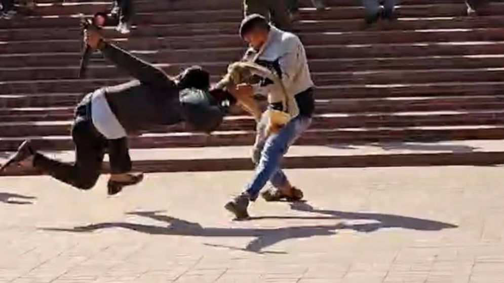 ভিডিওতে দেখা যায়, একজন যুবক দৌড়ে এসে এক সাংবাদিককের হাত ধরে ঘুরিয়ে ফেলে দেন। পরে ওই যুবক দৌড়ে পালানোর সময় পুলিশ তাকে আটক করে।