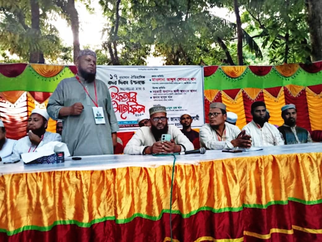 মাদারীপুরের রাজৈরে ঐতিহাসিক বদর দিবস উপলক্ষে জামায়াত ইসলামের আয়োজনে আলোচনা সভা ও গণইফতার অনুষ্ঠিত হয়েছে। গতকাল মঙ্গলবার (১৮ মার্চ) বিকালে রাজৈর উপজেলার আমগ্রাম ইউনিয়নের বাসাবাড়ি ঈদগাহ মাঠে বাংলাদেশ জামায়েত ইসলামের উদ্যোগে ইউনিয়ন সভাপতি অধ্যাপক এনামুল হক খানের সভাপতিত্বে অনুষ্ঠানে প্রধান অতিথি হিসেবে উপস্থিত ছিলেন সাবেক আমির, বাংলাদেশ জামায়েত ইসলামী মাদারীপুর জেলা শাখা ও ফরিদপুর অঞ্চলের টিম সদস্য মাওলানা আব্দুস সোবাহান খান। প্রধান অতিথির বক্তব্যে তিনি বলেন বাংলাদেশ জামায়েত ইসমালী সরকার গঠন করলে কোনো হিন্দু আমাদের দ্বারা নির্যাতিত হবে না, কারো সম্পত্তি আমরা দখল করে নিবো না বরং এদেশের মুসলমান হিন্দু খ্রিস্টান সহ সকল ধর্মের মানুষ স্বাধীনভাবে তাদের ধর্ম পালন করতে পারবে এবং রাষ্ট্রীয় সকল ধরনের নাগরিক অধিকার সমানভাবে ভোগ করতে পারবে। তিনি আরও বলেন মা বোনেরা স্বাভাবিক ভাবে চলাফেরা করতে পারবে। তাছাড়া এদেশে কুরআনের আইন চালু হলে কোনো দুষ্টু মা বোনের দিকে দুষ্টু চোখে তাকাতে পারবে না। এবং সবার সহযোগিতা পেলে বাংলাদেশ জামায়াত ইসলামী একটা মানবিক রাষ্ট্র প্রতিষ্ঠা করবে। এসময় বিশেষ অতিথি হিসেবে উপস্থিত ছিলেন রাজৈর উপজেলা শাখার আমির সহকারী অধ্যাপক আলী আহমদ আকন ও সেক্রেটারি নজরুল কাজী। এছাড়া জামায়েত ইসলামীর গণইফতারে উপজেলার বিভিন্ন রাজনৈতিক নেতাকর্মী, বিভিন্ন মাদ্রাসার ছাত্র ও এলাকার রোজাদার ব্যক্তিবর্গ উপস্থিত ছিলেন। এসময় বিভিন্ন ইলেকট্রনিক ও প্রিন্ট মিডিয়ার সাংবাদিকবৃন্দ উপস্থিত ছিলেন।