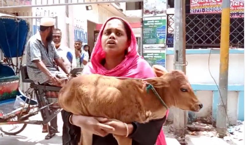 তার স্বামীর কাছে ২০ হাজার টাকা পাওনা দাবি করে স্থানীয় শুক্তাগড় ইউনিয়নের এক নম্বর ওয়ার্ড বিএনপির সাধারণ সম্পাদক মো. বেলাল খান বুধবার সকালে দুধের গরুটি নিয়ে যায়। কিন্তু মা গরুটিকে নিয়ে যাওয়ায় বুকের দুধ না খেতে পেরে অসুস্থ হয়ে পড়েছে বাছুরটি।