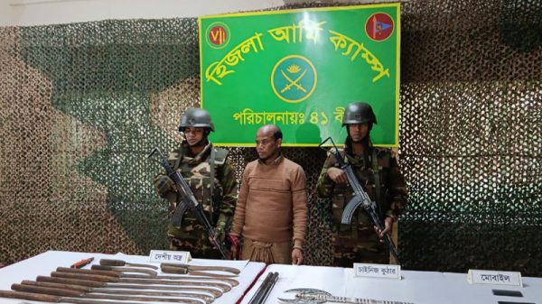 নিজস্ব প্রতিবেদক// জেলার হিজলা উপজেলার হিজলা গৌরব্দী ইউনিয়নে সেনাবাহিনীর বিশেষ অভিযানে দেশীয় অস্ত্রসহ একজনকে আটক করা হয়েছে। আটককৃত ব্যক্তির নাম মোস্তফা সিকদার। তিনি তিন নং ওয়ার্ডের মৃত আবদুর রহমান সিকদারের